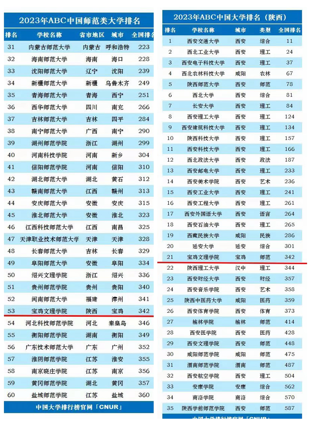 5月10日,2023年ABC中国大学排名正式发布,排名结果显示,共有846所公办本科层次院校上榜。在主榜单,伟德bv1946官方网站综合排名位列全国高校第342位,位列全国师范类高校第53位,陕西高校第21位,全省师范类高校第2位。